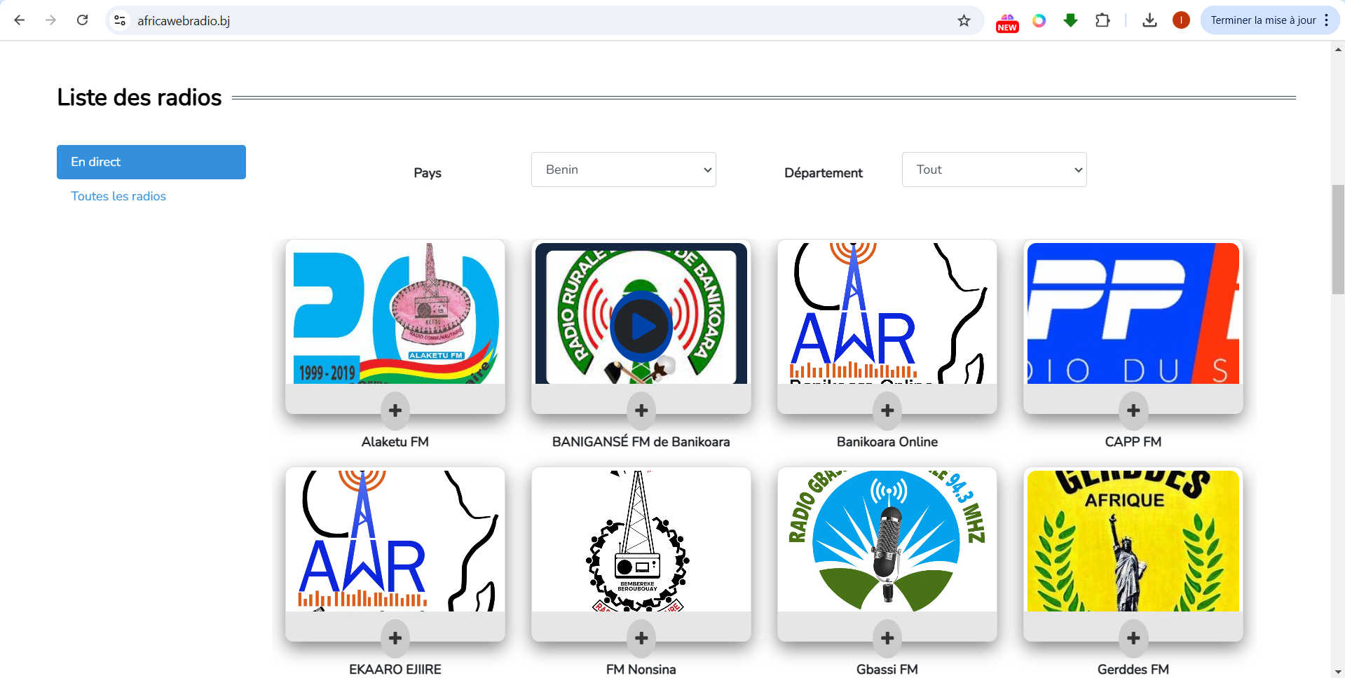 Africaster pour la diffusion des radios en ligne.